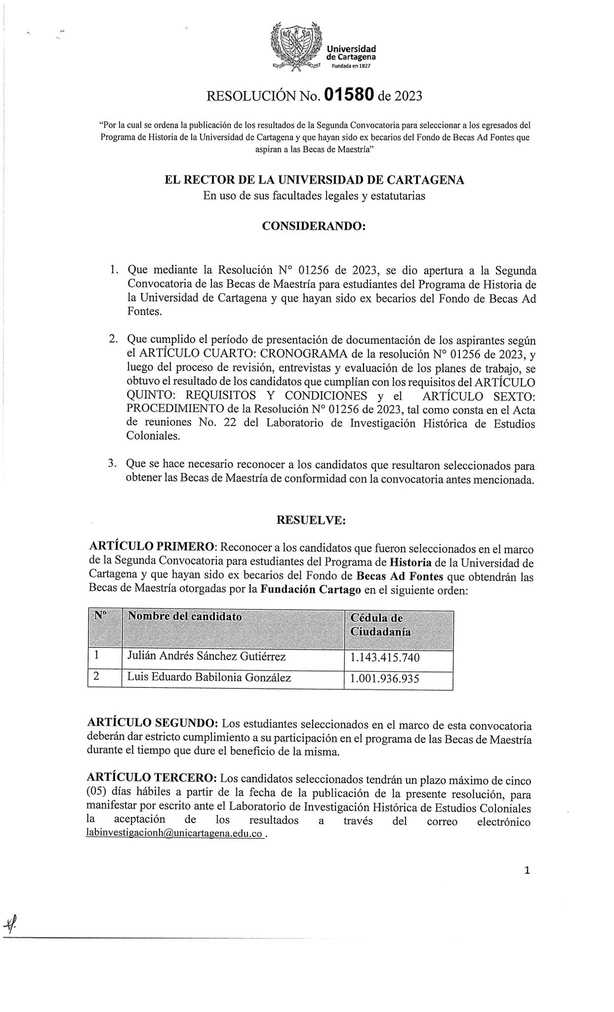Resultados de la Segunda Convocatoria de Becas Ad Fontes para Maestría.