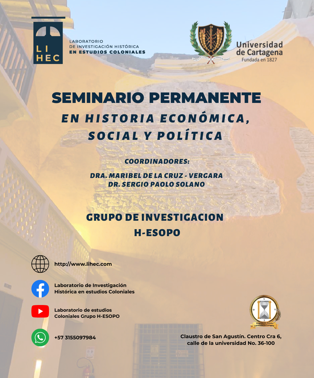 Laboratorio de Investigación Histórica en Estudios Coloniales de la Universidad de Cartagena - Grupo de Investigación en Historia Económica, Social y Política H-ESOPO - Dirige: Doctora Maribel de la Cruz Vergara.