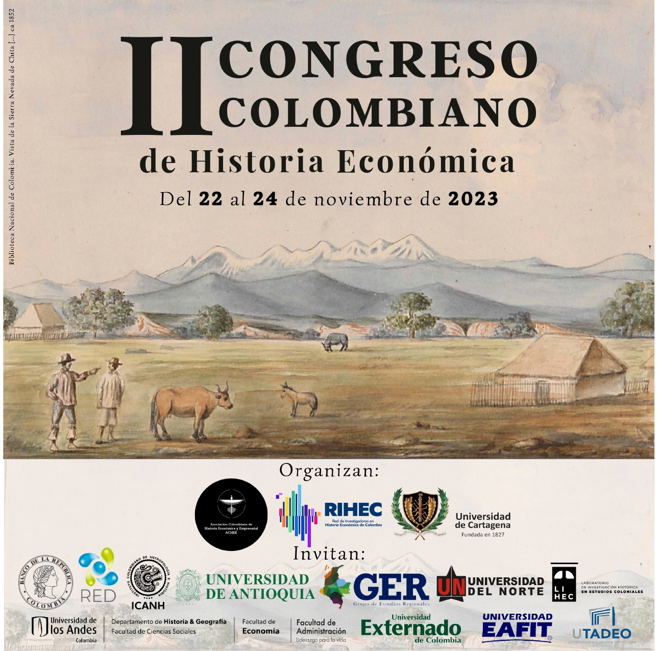 La Asociación Colombiana de Historia Económica y Empresarial y la Red de Investigadores en Historia Económica de Colombia convocan a presentar ponencias al II Congreso Colombiano de Historia Económica a realizarse entre los días 22 y 24 de noviembre de 2023 en la Universidad de Cartagena (Cartagena de Indias, Colombia).