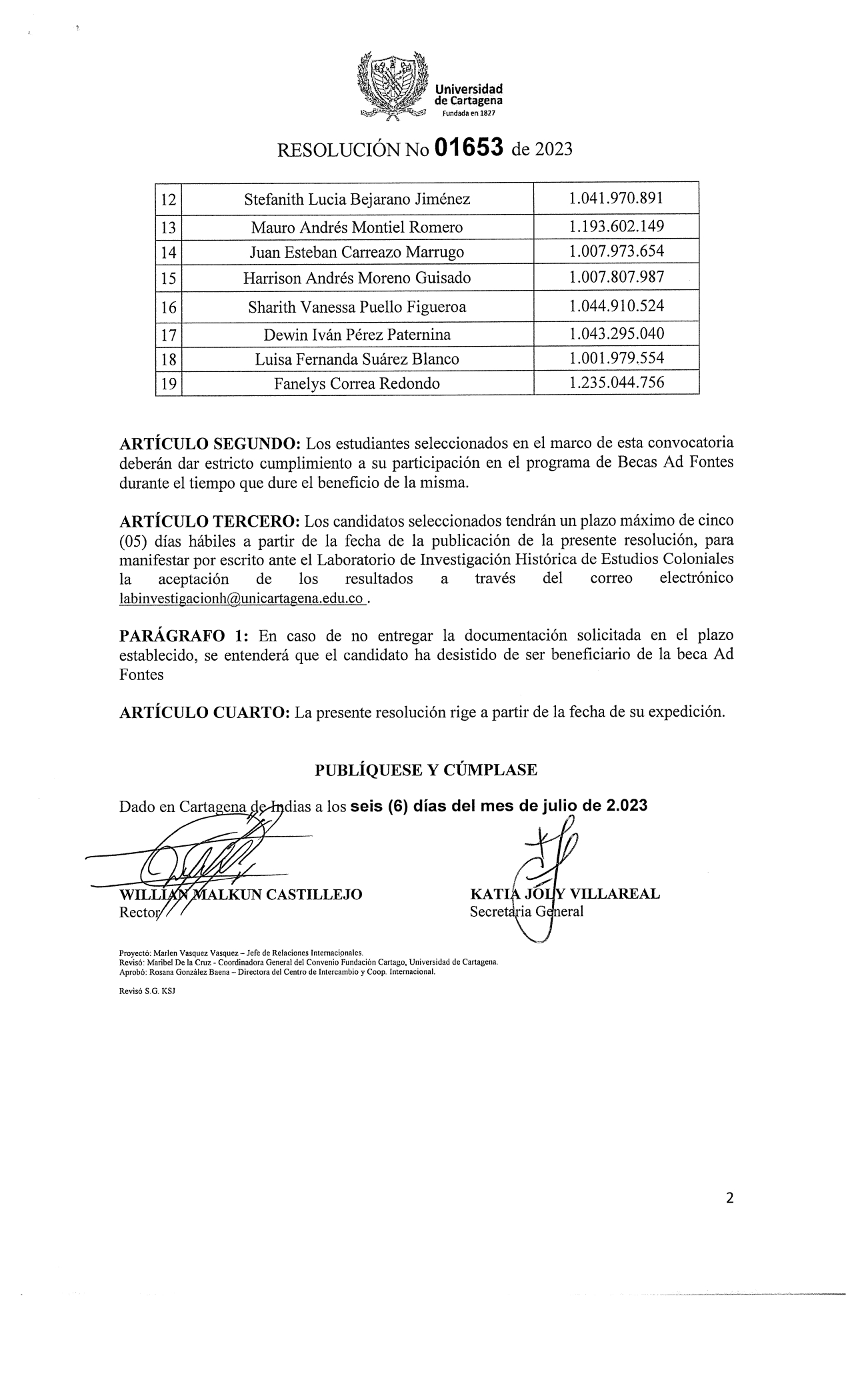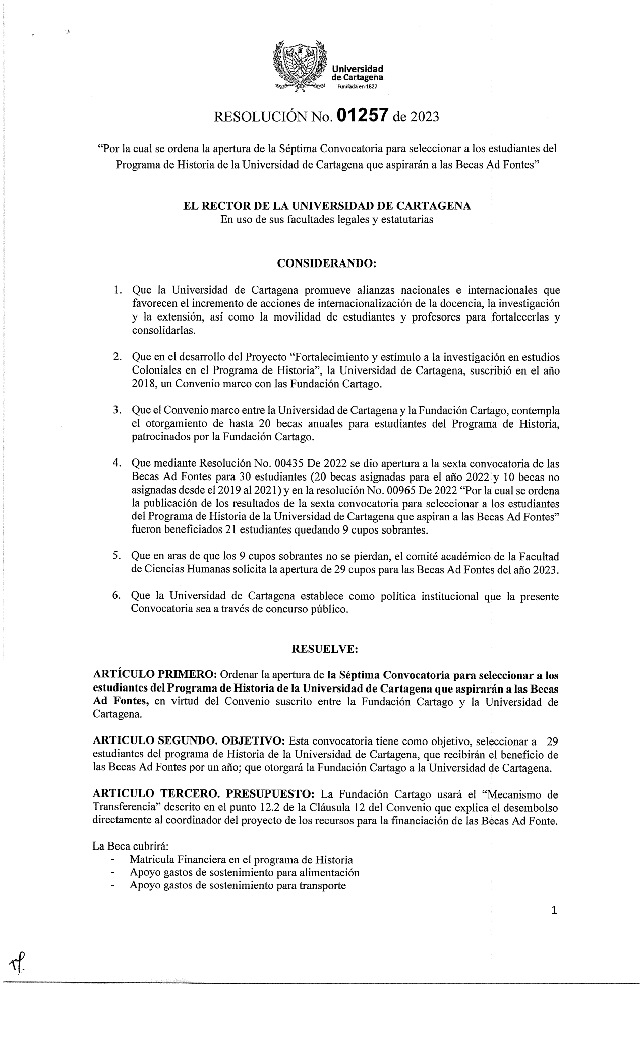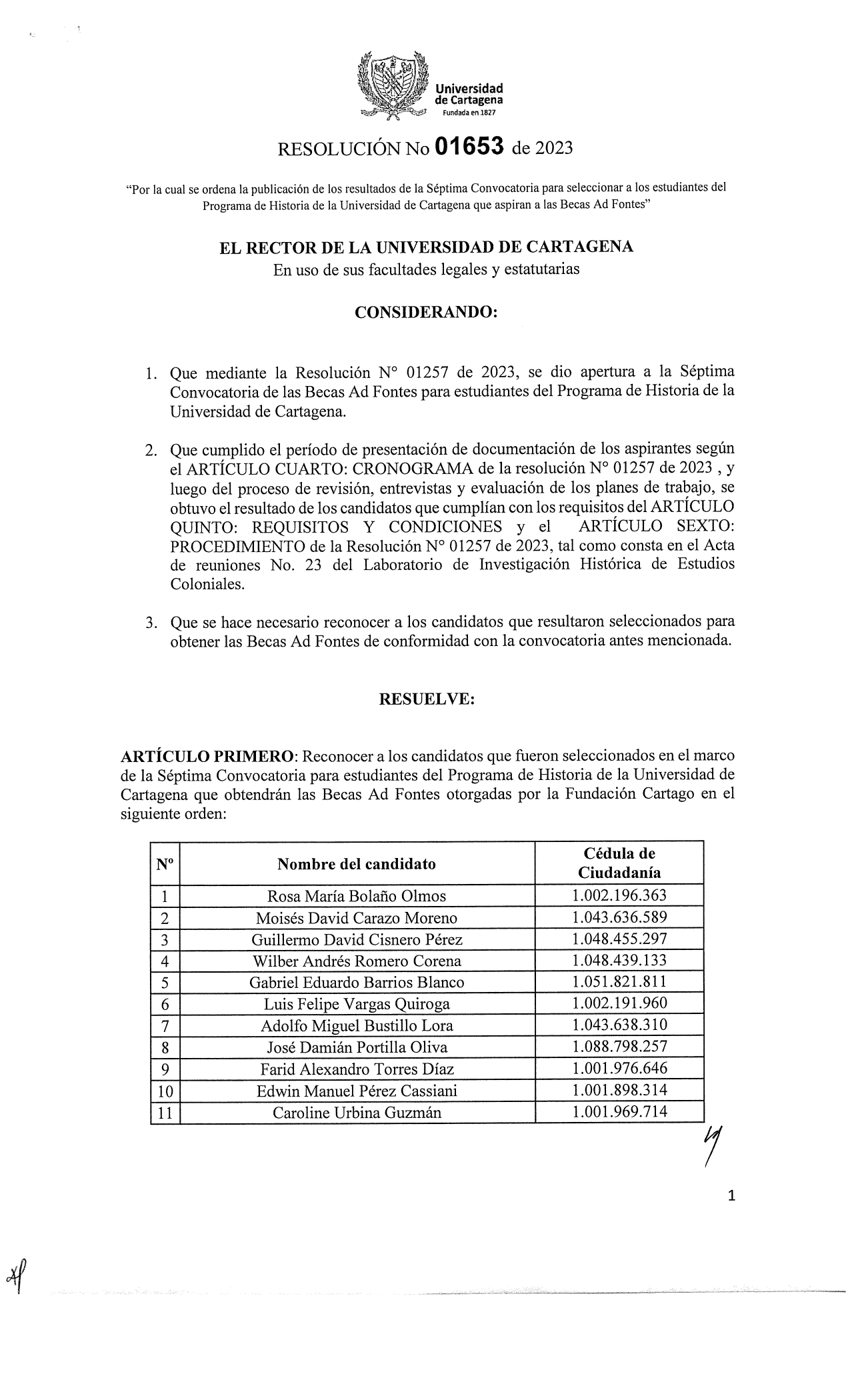 Resultado de la Séptima Convocatoria de Becas Ad Fontes para Pregrado.