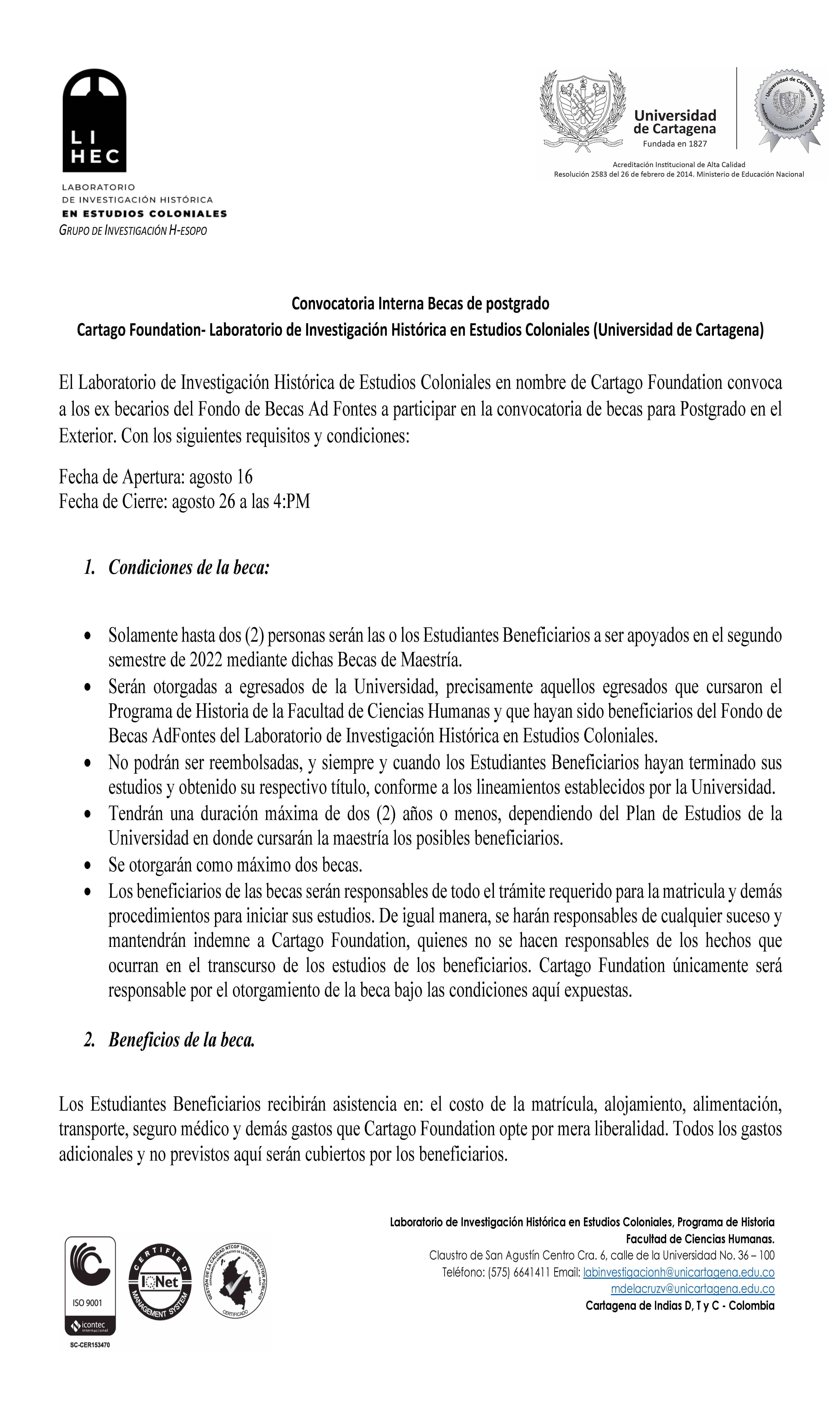 Convocatoria para los aspirantes de la Beca AdFontes de Mestría 2022-2.