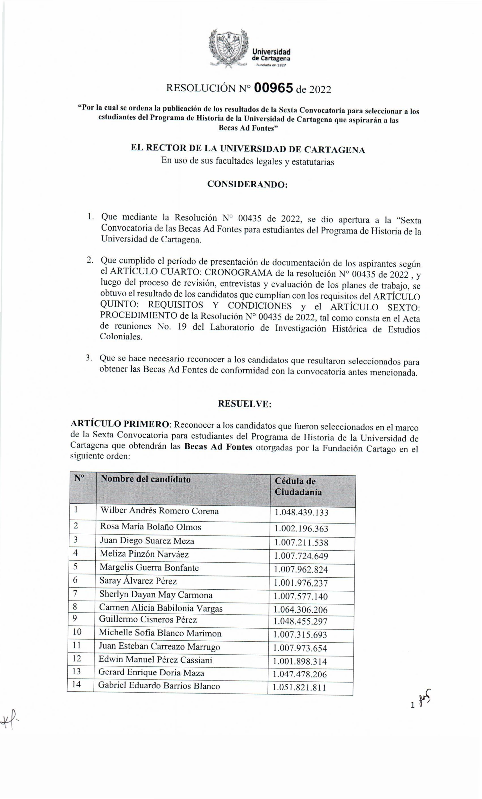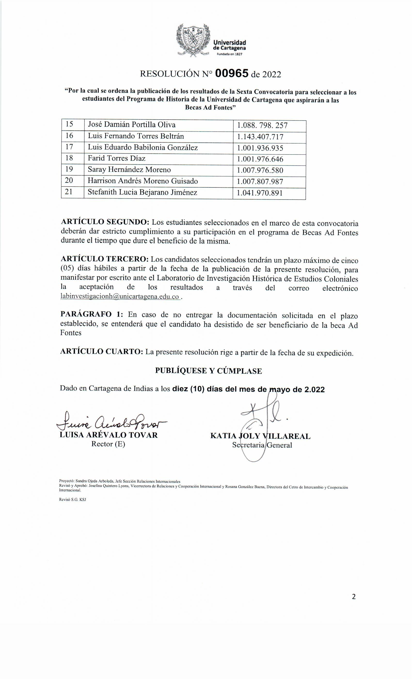 Res No 00965 de PREGRADO 2022
